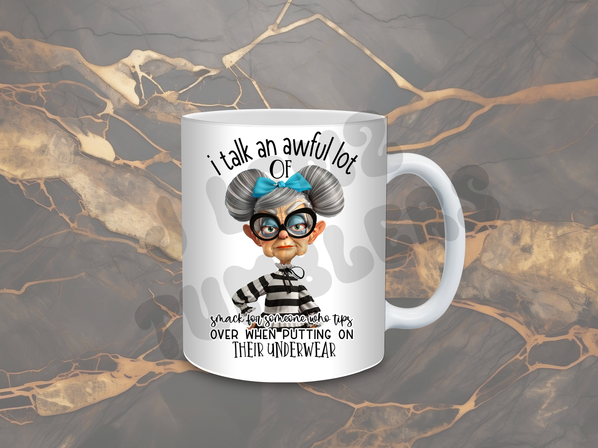 Wake up and start the day with I TALK AN AWFUL ALOT coffee cup. With our quirky design and playful tone, this cup will add some fun to your mornings. Made with quality materials, it's perfect for any coffee lover (or tea lover, we don't judge)!