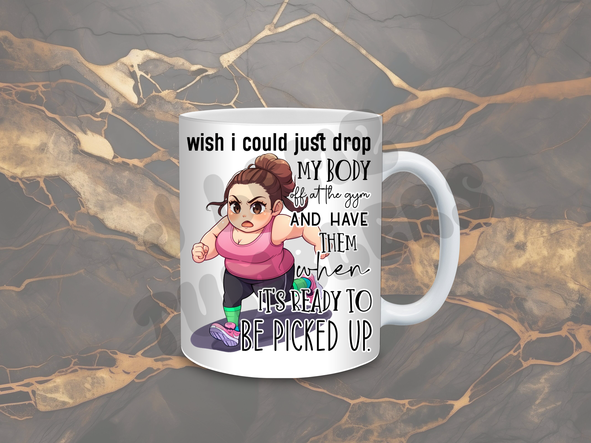 Transform your morning routine with our WISH I COULD DROP MY BODY OFF AT THE GYM coffee cup. Start your day off with a smile as you sip on your favorite brew in this playful mug. Perfect for gym-goers, this cup adds a touch of humor to your daily caffeine fix.