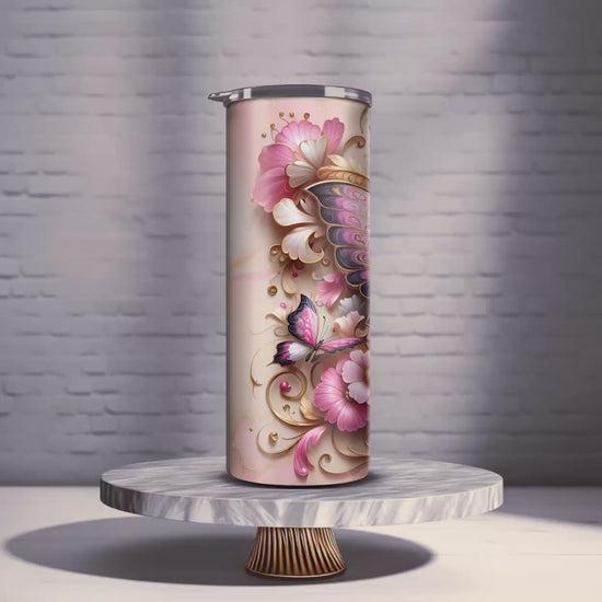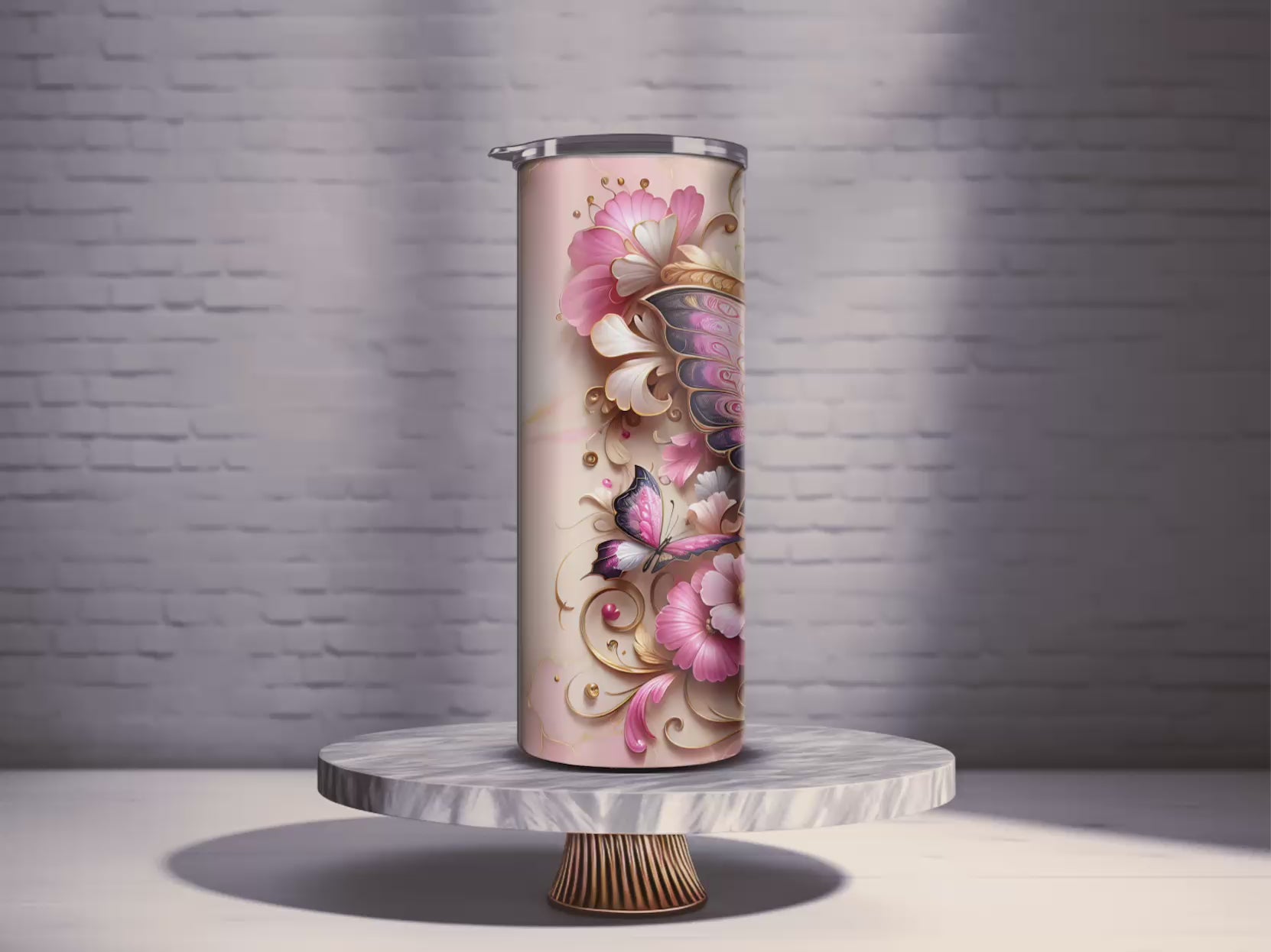 Add a touch of whimsy with this BUTTERFLY AND RIBBON TUMBLER. Features a colorful butterfly and ribbon design. Stay hydrated in style while on the go!